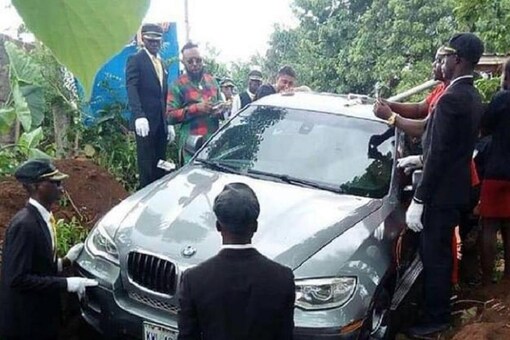 According to a viral photo shared on Facebook, Azubuike from Nigeria, buried his father in a luxury SUV by BMW worth $85,000 (Rs 57 lakh in today’s exchange rate), ditching the coffin, which is a traditional way of burying anyone post death.