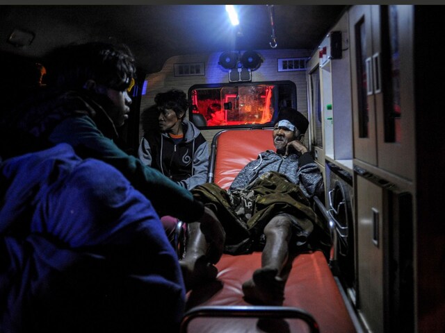 Survivors gathered overnight in a Cianjur hospital parking lot. Some of the injured were treated in tents, others were hooked up to intravenous drips on the pavement as medical workers stitched up patients under torchlight.